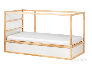 Letto per bambini Ikea, modello Kura. Acquistato nel 2021, usato ma in condizioni abbastanza buone (manca una doga che si era danneggiata). Vendo insieme volendo anche i 2 materassi sempre Ikea (è stato usato come un letto a castello ma può anche essere un singolo, dipende da come lo si monta, vedi foto). Le istruzioni si trovano sul sito Ikea visto che il modello è ancora attualmente venduto. Da ritirare in loco, smontato, non prima del 25 aprile causa arrivo nuovo letto.