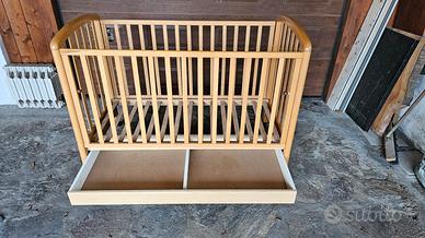 Lettino bimbo marca Bimbo Mio in buono stato d'utilizzo con cassetto sponde removibili e ruote per lo spostamento....misure :