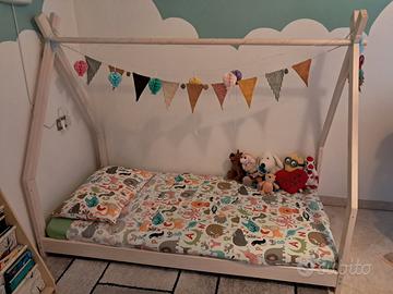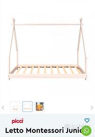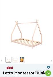 Vendo letto Montessori Picci in legno di faggio sbiancato con struttura a casetta e il suo materasso ortopedico.