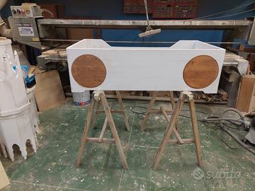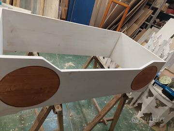 Fatto artigianalmente da un falegname, in ottimo stato, con dimensioni 120x60. Con piccole doghe in legno dotate di piedini per rialzare il materasso da terra. Vendo con materasso dotato di rivestimento in Aloe.