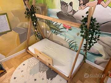 Per passaggio a letto piu grande vendo lettino stile montessoriano per bambini con doghe e protezione anticaduta, tutto in legno naturale.