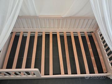 Vendo letto Montessoriano, marchio Picci Firenze, con baldacchino bianco e le sponde che si possono togliere. Usato in buone condizioni, gia smontato e imballato con istruzioni.