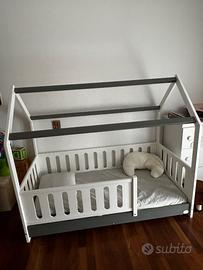 Lettino montessoriano usato pochissimo per qualche riposino pomeridiano. Per questioni organizzative e spazzi in vendita a 400€ assieme al corredo su misura di lenzuoli e piumini.