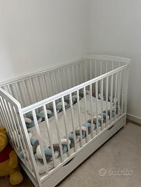 - bianco in legno pino - misure 60x 120 - regolabile in due altezza - materasso - come nuovo mai usato