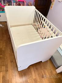 Letto per bambino/a da 0-4 anni trasformabile per poter ospitare bambini fino a 12/13 anni. Colore bianco. Completo di istruzioni, viti e complementi È incluso il materassino per lettino Tutto come da foto Non spedisco