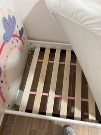 Letto per bambini imbottito con doghe in legno, misure 150X74 h 21.