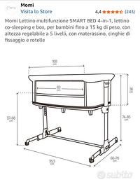 Smart bed - lettino multifunzionale marca Momi, 4 in 1 , lettino co sliping ( next to me) , per bambini fino a 15 kg di peso, altezza regolabile a 5 livelli, con materesso, cinghie di fissaggio, rotelle e zanzariera; dimensioni del prodotto : 95L x 50l x 88H cm; Lettino smart 4 in 1: il pratico lettino può essere utilizzato come lettino da viaggio o box. Può essere utilizzato anche come lettino co-sleeping, facilitando l'allattamento e il cambio del pannolino durante la notte; Ideale per le madri che allattano: Il lettino co-sleeping è una grande comodità per le mamme che allattano e possono occuparsi del loro bambino senza dover sempre alzarsi. Tutto ciò che serve alla mamma e al bambino si trova nella tasca laterale; Pratico: Il lettino può essere impostato su 5 diverse altezze e può essere regolato per adattarsi all'altezza del lettone dei genitori. Due livelli di sonno e una funzione di regolazione dell'angolo del materasso offrono un ulteriore comfort di sonno; Funzionale: Robusto telaio a T con rotelle scorrevoli per un trasporto rapido, materassino, ampia finestra a rete e cerniera per facilitar;