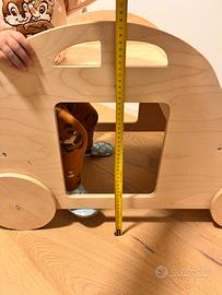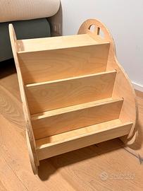 Fatta a mano, in legno. Altezza totale circa 48 cm. Lunghezza circa 70 cm. Davanti ci sono i ripiani per tenere i libri e posteriormente una seduta con tavolino. Buonissime condizioni.