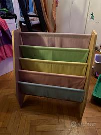 Tenuta bene libreria con tasche arcobaleno, ideale per camere dei bimbi