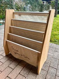 Libreria montessoriana per bambini, progettata per incoraggiare l'indipendenza e l'amore per la lettura fin dalla tenera età. Realizzata in legno resistente e tessuto durevole. Marca Really Nice Things - Folki Freckles. Usata ma in ottime condizioni.