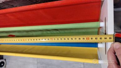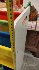 Libreria e porta giocattoli per bambini. Presenta come da foto uno strappo di 5cm sullo strato verde. Facilmente ricucibile. No spedizione.