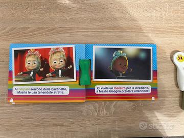 Libro Masha e Orso con pena eletronica senza pila,alla ultima pag una parte e rovinata e un libro Masha e Orso gioco che è come nuova.