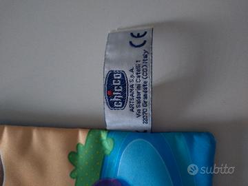 Colorato libretto in soffice tessuto, con superfici e consistenze diverse per offrire al bambino sensazioni differenziate che affinano la sua sensibilità tattile. Le pagine del libro "scricchiolano".
