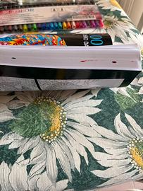 Vendo libro da colorare con scatola di pennarelli a doppia punta (fine-grossa). I pennarelli sono 23 in quanto uno ha la punta rovinata. É stata colorata solo la prima pagina (come da foto) mentre tutte le restanti sono da colorare.