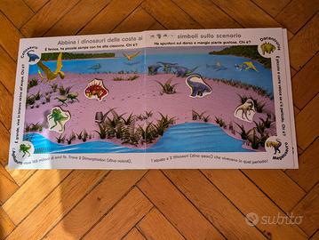 LIBRO Gioco con diversi scenari per posizionare le 16 tessere magnetiche con le figure dei dinosauri