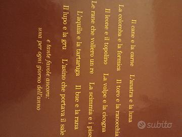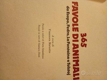 legatura rigida illustrata , misura 34,5 x 24,5 x5 cm. 365 favole di animali da Esopo, Fedro, La Fontaine e Tolstoj. tavole a colori di Piera Grandesso tavole in nero di Gustav Dore'.