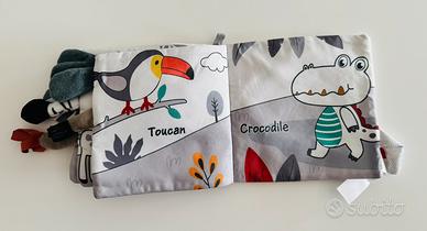 Libro sensoriale morbido per neonati e bambini piccoli con animali ✔️ In tessuto morbido e sicuro ✔️ Stimola tatto e curiosità (parti da toccare e muovere) ✔️ Colori vivaci e disegni simpatici ✔️ Perfetto per lo sviluppo sensoriale ✔️ Ideale da portare in viaggio o nel passeggino 👶 Adatto fin dai primi mesi Condizioni: Ottime / come nuovo