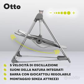 Lionelo Otto Dondolo per Neonato e Bambini fino a 9kg Sdraietta con Giocattoli 5 Velocità Suoni Rilassanti Della Natura Altalena Portatile e Pieghevole Cinture a 5-punti Cavo di USB, Grigio