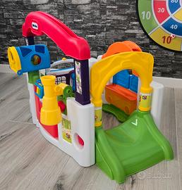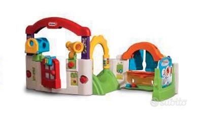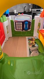 La struttura si può traasformare in area di gioco aperta. Numerosi i giochi interattivi sulle pareti: cassetta della posta, pianola, percorso delle palline, telescopio, specchio e tanti altri.