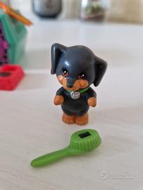 Per veri collezionisti! Vendo set originale Littlest Pet Shop (Kenner, 1993) modello "Perky Pup with Cozy Crate" in condizioni da vetrina. Il set è completissimo di ogni minimo dettaglio originale, inclusi i pezzi cartacei quasi impossibili da reperire: Cucciolo: Rottweiler/Doberman con collare e medaglione. Trasportino: Verde acqua con porta fucsia e etichetta originale in cartoncino ancora attaccata. Accessori: Ciotola rossa e spazzola verde. IL PEZZO RARO: Include anche il foglietto originale (finto giornale) del set, perfettamente conservato. Questo inserto è una vera rarità che completa il valore storico del gioco. Giocattolo vintage conservato con estrema cura, plastiche lucide e senza sbiaditure. Un pezzo di storia degli anni '90 pronto per essere esposto o regalato.
