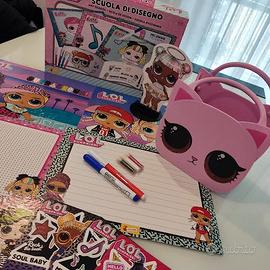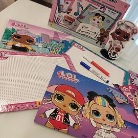 LOL SURPRISE + BORSETTA LOL + n 4 LAVAGNETTE scrivi e cancella + n 2 pennarelli NUOVI + 9 card + sagoma LOL SUGAR brand LISCIANI