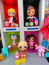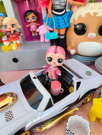 LoL Surprise grande lotto Biggie Pet Swag, 8 bambole lol, oh la La Baby Surprise DJ e tantissimi accessori. Il lotto si compone del pratico zainetto, utile per uscire o per riporre tutti gli accessori di gioco; 7 lol surprise, giocate ma in buono stato, accessoriate come visibile in foto; il Biggie PET della famiglia Swag; la Big Lil Oh La La Baby Surprise DJ; Omg Class Prezz; una macchina sportiva; outfit e tanti accessori con cui giocare.