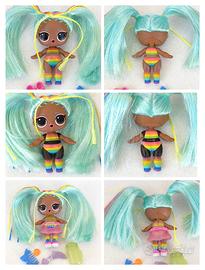 LOL surprise originali MGA Entertainment OMG Sunrise serie Sunshine Makeover, proposta con Lol Rainbow Raver serie Hairgoals. Come nuove, bellissime e complete di tutti i loro accessori, come visibile in foto.La lol cambia colore in acqua fredda e i capelli della Omg cambiano colore al sole o se esposti a lampada UV.