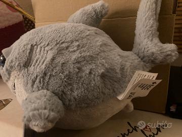 Lollo lo squalo tenero e super morbido peluche del mare della linea Ocean Buddies AcquAmici. Colore grigio, grigio chiaro e grandi occhi blu. Dettagli ricamati per le branchie e i denti. Nuovo, mai esposto e con cartellino.