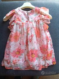 Vestito abito da bambina taglia 2 anni, Losan anche per cerimonia con fiori arancio e farfalle
