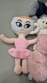 11 Peluche xome da foto tra cui: 1 orsetto gigante con scritta love morbidissimo 1 Tasmania rosso WarnerBros con cartellino 1 peluche Nero DreamWorks con Cartellino 2 peluche baci perugina con tasca 1 ballerina cappuccina 5 peluche vari Esposti in vetrina, mai giocati.