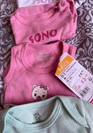 Set 13 pezzi mix neonata 1-3m fino 56cm in ottimo stato. 2 body manica corta 1 body canotta 2 body manica lunga leggerà usabili come maglie 1 tutina leggera 1 maglia manica lunga 5 leggins 1 paio calzine Vari marchi emc, prenatal, le bebè, c&a Accetto offerte