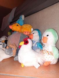Vendo lotto di 17 pupazzi morbidi per bambini, di varie dimensioni e soggetti (orsi, animali, papere, coniglio, cane, ecc.).