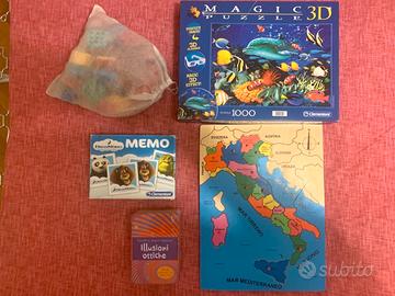 l'allegro chirurgo (manca di alcuni pezzi) - indovina chi? - illusioni ottiche - gioco cartina italia in legno - computer gioco bambini sevi castle - set costruzioni Montessori - il corpo umano - disegno Animaletti spiralosi - Puzzle Minnie - puzzle super color maxi 24 pezzi - me contro te 100 pz - Puzzle 100 xxl - puzzle 200 xxl - puzzle pow patrol - puzzle 1000 pezzi - puzzle 3d 1000 - pezzi memo dreamworks - Memo games Disney memo cars