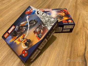 Marvel Spider-Man vs. Ghost Rider in Motocicletta - Giocattolo dei Supereroi con Modellino di Moto, 2 Minifigure, Ragnatela e Elementi Fuoco