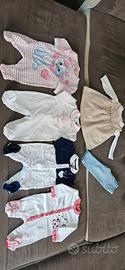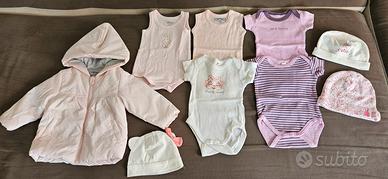 Lotto 23 pezzi abbigliamento neonata 0/3 mesi , 50/56 cm , cotone mezza stagione , usata in buone condizioni, così composto: