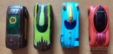 Lotto di 4 macchinine di diversi colori: rossa, azzurra, verde, giallo e marrone; tutte e 4 in scala 1/64 dei Gormiti, di Orrore Profondo il Signore del popolo del vulcano Fuoco, di Toby il Signore del popolo del mare Acqua, di Nick il Signore del popolo della terra Roccia, di Lucas il Signore del popolo della foresta Bosco, della serie il Ritorno dei Signori della Natura.