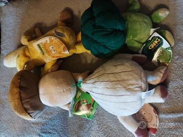 Lotto 4 pupazzi, ortaggi e frutta, nuovi con etichetta.