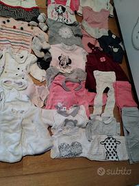 lotto 41 pezzi bambina 3/6 mesi autunno/ inverno cotone e ciniglia così composto: