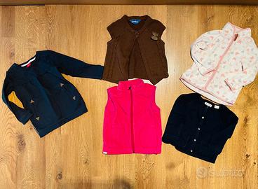 Lotto 30 pezzi abbigliamento bambina TG. 92, in buone condizioni. - 1 body manica corta - 1 vestito - 1 maglia - 6 T-shirt manica lunga - 1 T-shirt manica corta - 2 leggings - 6 pantaloni - 1 pigiama (body + pantaloni) - 1 giacca in pile con zip - 1 felpa - 1 smanicato - 1 gilet in pile - 6 mutande nuove (mai usate) Marchi: Zara, Carter’s, H&M, etc.