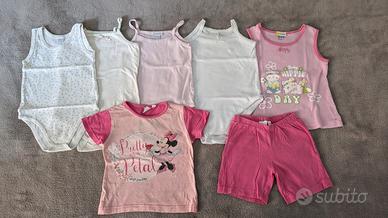 Lotto abbigliamento neonata 18-24 mesi primavera-estate, composto da 26 articoli: - 5 vestiti; - 2 giacchetti di cotone; - 2 pantaloni/leggins; - 3 pantaloncini; - costumino e ciabattine; - cappello (con protezione collo); - 2 canottiere; - 3 magliette; - 4 body; - pigiama manica corta. Zona di ritiro: Centocelle, Eur Torrino, Ciampino.