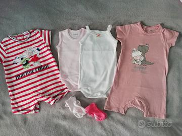 (Lotto 3) Lotto abbigliamento per neonata 3-6 mesi, composto da: - vestito con culotte; - scarpette; - 3 pagliaccetti; - 2body; - completo maglietta + leggins; - 2 paia di calzini. Zona di ritiro : Centocelle, Eur Torrino, Ciampino, Circo Massimo, San Giovanni.
