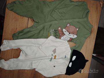 Set unisex, composto da 24 pezzi misti fra: 12 body, 1 coordinato, 2 pantaloni, 4 tutine intere e 4 cappelli. Marche varie, 0 mesi. Materiale: cotone e spugna.