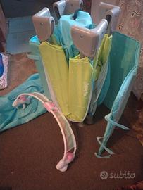 Lettino da campeggio completo di sacca trasporto e giostrina musicale.