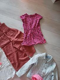 Vendo come in foto ultimo lotto con abbigliamento bambina 3 anni! Giubbino in jeans frozen e vestitino rosa maculato e salopette sono 4/5 anni Marche h&m Benetton ovs