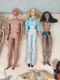 Lotto che comprende 8 bambole in buone e cattive condizioni con vestiti e accessori.