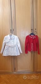 Lotto di tre vestiti per bambina di 7/8 anni così composto: 1 vestito oro e bianco cm 128, 1 giacca bianca Chicco 122 cm, 1 golf rosso Chicco m 127