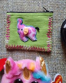lotto di 4 portafogli per bimbi. Due sono nuovi. Uno è un simpatico unicorno Ty, uno è verde con un ricamo a forma di elefante etnico made in India, e gli altri due hanno una stampa di un cagnolino e una faccina sorridente giallo. Include 4 portafogli - Materiali morbidi e resistenti - Design carini e originali. Vendibili anche separatamente con prezzi diversi. Chiedi info in chat. Spedisco
