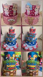 Consegna a Mano su Napoli Lotto di 8 torte scenografiche: Old Farm Ben 10 Encanto Ariel Sweet Candy Sonic Paw Patrol Cry Babies
