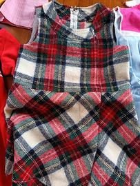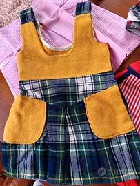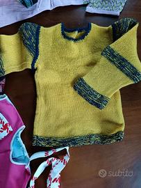 Vendo lotto di vestitini da bambina risalenti agli anni Settanta. Sono cinque abiti (invernali ed estivi); un pullover di lana lavorato a mano; un cappellino di lana con pon pon; una camicetta. Lunghezza: da 37 centimetri (la camicia) a 50/55 gli abiti. Larghezza spalle, 22 centimetri. Due capi hanno striature gialle da invecchiamento, il maglione è infeltrito. Vendo il lotto a 33 euro o i singoli capi a 5 euro al pezzo; 2 euro per il cappellino.