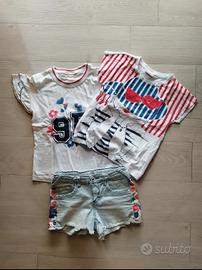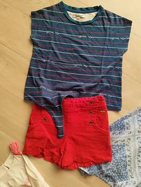 abbigliamento bambina: - camicia in cotone con spalline regolabili. Cerniera laterale a scomparsa. Doppio drappeggio sul davanti. Usato 2-3 volte, praticamente nuovo. Stampa geometrica tipica del logo. Marca Marni, taglia 6 anni ma veste abbondante anche 7 direi. €9 - Top con retro in doppio tessuto: maglina di cotone e rete. Pantaloncini in tessuto garzato, ampi con elastico in vita. Usato pochissimo, come nuovo. Marca Benetton taglia 5 anni ma in realtà veste 6-7 anni. Allego misure, vedi foto. €7 - Abbigliamento bimba: short in jeans morbido e sottile, regolabile in vita, con fascia laterale in tessuto fiorato. Abbinabile ad entrambe le magliette. Top con manica a volant, applicazione di numeri e stampa sul davanti. Maglia con elastico in vita e manica scesa, stampa a righe. Marca Brums taglia 8 anni. Perfetto. €8 - Abbigliamento bambina, lotto composto da: - set canotta lunga Mayoral e ciclista rosa original marines. - Vestito lungo drappeggiato con spalline sottili H&M e coprispalle in filo di cotone, traforato idexe. - Short rosso, vita alta con bottoni decoro e zip laterale. t shirt annodabile, crop su short. piazza Italia. - Canotta stampa estiva, ovk e leggings original marines, mai utilizzati. Taglia 5-7 anni. Veste poco, direi 5-6 anni. Tutto in ottime condizioni, svuoto l' armadio! €10